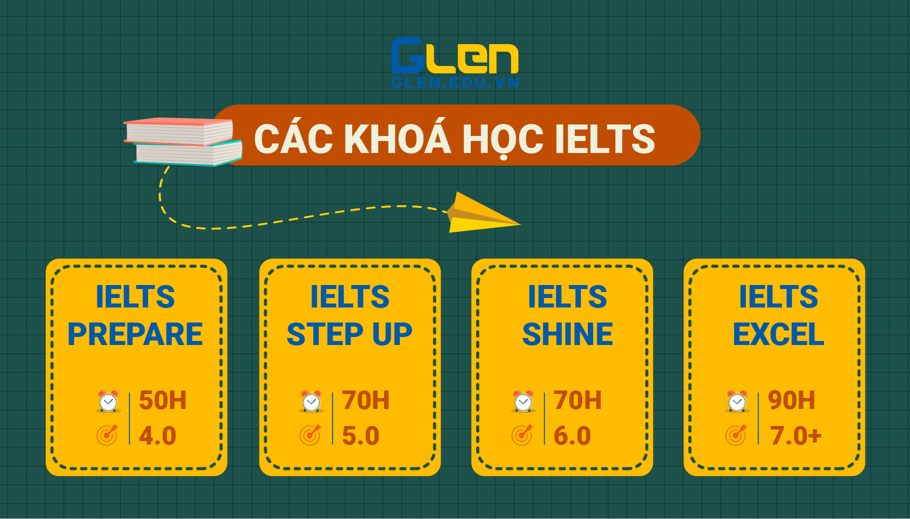 Các khóa ôn luyện IELTS tại GLEN Education cung cấp cho các học viên những kiến thức cơ bản và các kĩ năng làm bài cần thiết để đạt được kết quả tốt nhất.