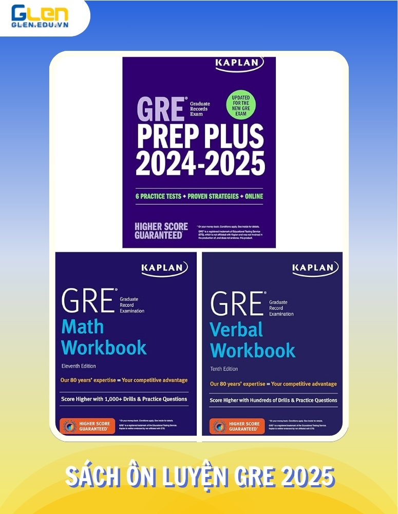 Đây là gói trọn bộ Kaplan gồm 3 sách luyện thi chính: Verbal, Quant và Practice Tests. Nội dung tương tự như GRE Prep Plus, nhưng chi tiết hơn và có phần luyện chuyên sâu từng kỹ năng. Kaplan luôn mạnh ở phần hướng dẫn chiến thuật – từ loại bỏ đáp án bẫy, phân tích câu hỏi, đến quản lý thời gian. Bộ này phù hợp khi bạn học dài hạn, muốn có tài liệu đầy đủ theo khung chương trình bài bản. Bạn có thể sử dụng bộ sách song song với tài khoản luyện thi trực tuyến của Kaplan để tận dụng tối đa hiệu quả học.