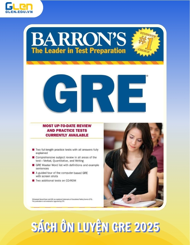 Một lựa chọn kinh điển với phần lý thuyết rõ ràng và bài tập thực hành sát đề. Cuốn sách phân tích từng phần thi, cung cấp từ vựng nâng cao, kèm theo bài thi thử và chiến lược làm bài hiệu quả. Barron’s có phần từ vựng rất phong phú (trên 3.500 từ), nhiều bài luyện tập kèm giải thích. Tuy nhiên, giao diện và phong cách viết hơi “cũ”, phù hợp hơn với người đã quen học theo kiểu truyền thống, thích sách in nhiều chữ. Tóm lại, Barron’s GRE vẫn hữu ích cho phần luyện viết luận (AW) và luyện đọc chuyên sâu (RC).