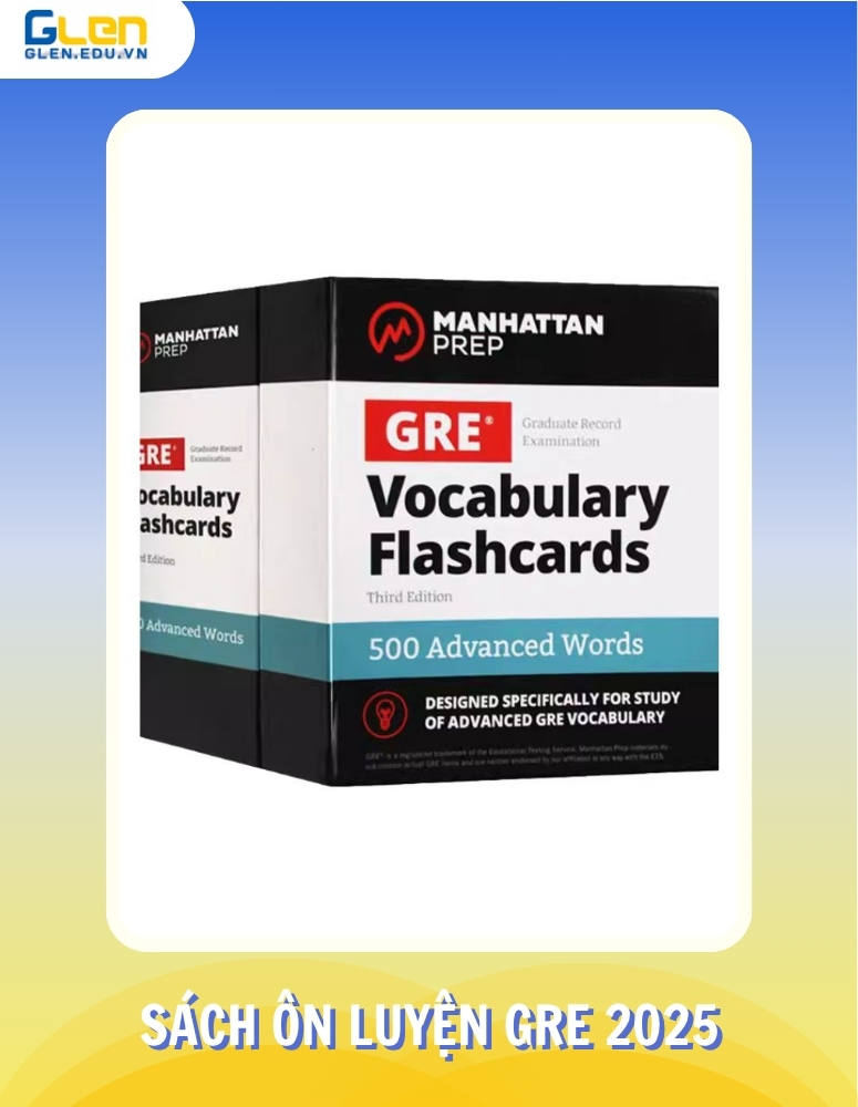 Đây là phiên bản đơn giản hóa của bộ flashcard Manhattan. Tập trung vào 500 từ thông dụng nhất trong GRE, được chọn lọc kỹ lưỡng từ kho đề thi thật và đề luyện. Bộ flashcard này phân loại từ theo mức độ xuất hiện trong đề thi, cung cấp cách sử dụng từ đúng ngữ cảnh và mẹo nhớ từ nhanh và lâu. Nếu bạn không có nhiều thời gian học từ vựng, thì chỉ cần nắm chắc 500 từ này đã là bước khởi đầu rất tốt. Rất phù hợp cho giai đoạn tăng tốc từ vựng trước kỳ thi.